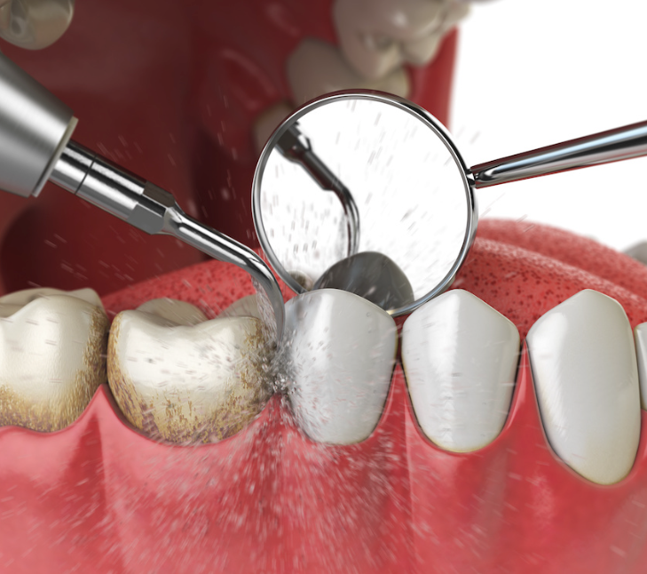 - Scaling to remove tartar and plaque from the tooth surface and below the gumline